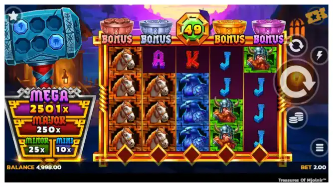 Thunder roars across the skies, lightning flashes, and the earth shakes as Thor’s mighty hammer awakens. Treasures of Mjolnir is not just another slot—it’s a dive into Norse mythology where every spin carries the raw force of the gods. Charged reels spark with divine energy, and with every strike of Mjolnir, fortunes forged in lightning await. This game captures both the thrill of the storm and the promise of legendary treasure.